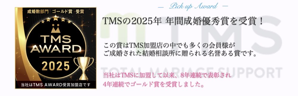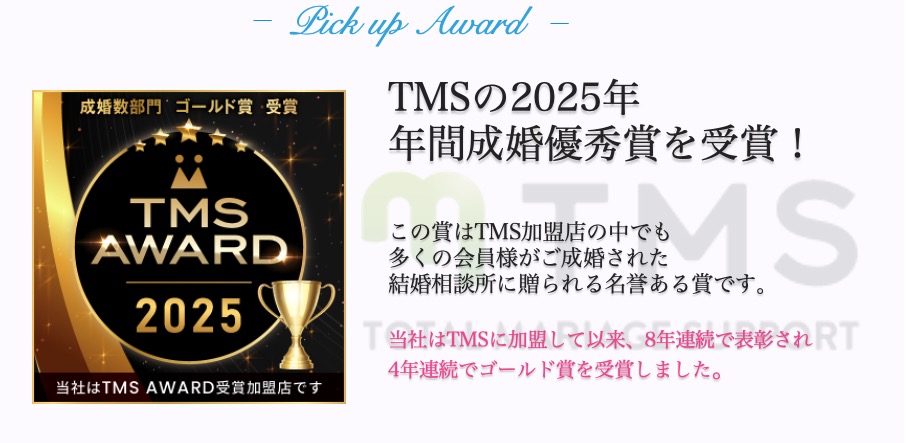 ご成婚に結びつきやすい婚活環境(会員数、会員構成など)を整え、会員様お一人おひとりに対して、婚活スタート前の勉強会の実施、24時間メールでの相談受付けなど、お見合い当日の応援などのきめ細やかなサポートを実践することで、高い成婚率を実現しています。