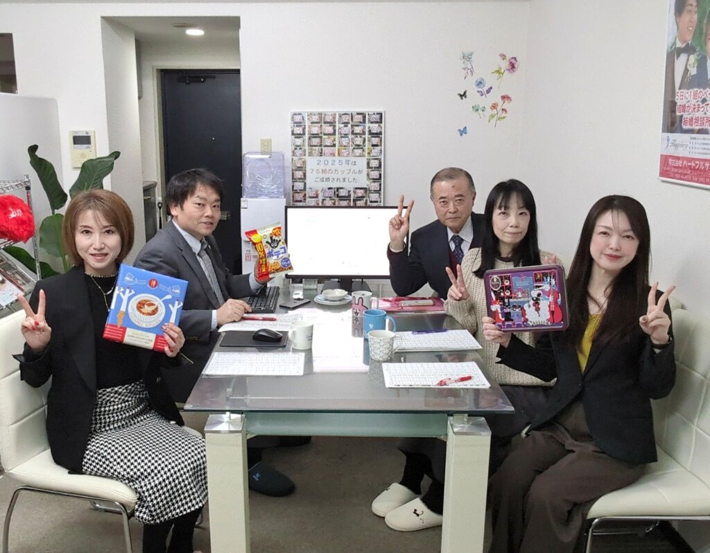 全員で会員様の婚活状況を確認し合って、婚活が順調に進むようなアドバイス内容と会員様に合いそうなお相手を話合いました。そして、話合った結果は担当から会員様へアドバイスとお見合いのご提案をさせていただきました。